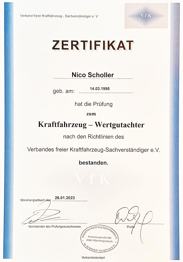 „Schnelle Termin Vergabe, reibungsloser Ablauf, höfliche und vorkommende Beratung/Betreuung. Sehr hochwertige Begutachtung. Sehr zu empfehlen.“